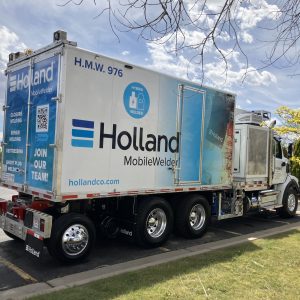 Holland’s Hybrid Welder™ features the same industry-leading equipment as a traditional MobileWelder®, with a battery-powered welder head. This allows us to deliver the high-quality flash-butt welds Holland is known for in a more sustainable package. The design also eliminates mechanical systems that are known failure points and increases Holland’s already industry-leading uptime.
