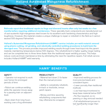 HAMR® sets a new standard for safer, longer lasting specialty track component repairs by using robotically controlled welding procedures to build back damaged areas.